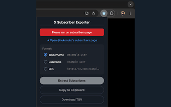 Het gebruik van de X Subscriber Exporter is eenvoudig. Gebruikers hoeven alleen hun X-abonneepagina te openen, op het extensiepictogram te klikken en de optie "Abonnees extraheren" te selecteren. Vervolgens kunnen ze de lijst gemakkelijk kopiëren naar het klembord of downloaden als een TSV-bestand. Deze functionaliteit maakt het een handige tool voor iedereen die zijn abonneelijsten wil beheren en exporteren zonder gedoe.